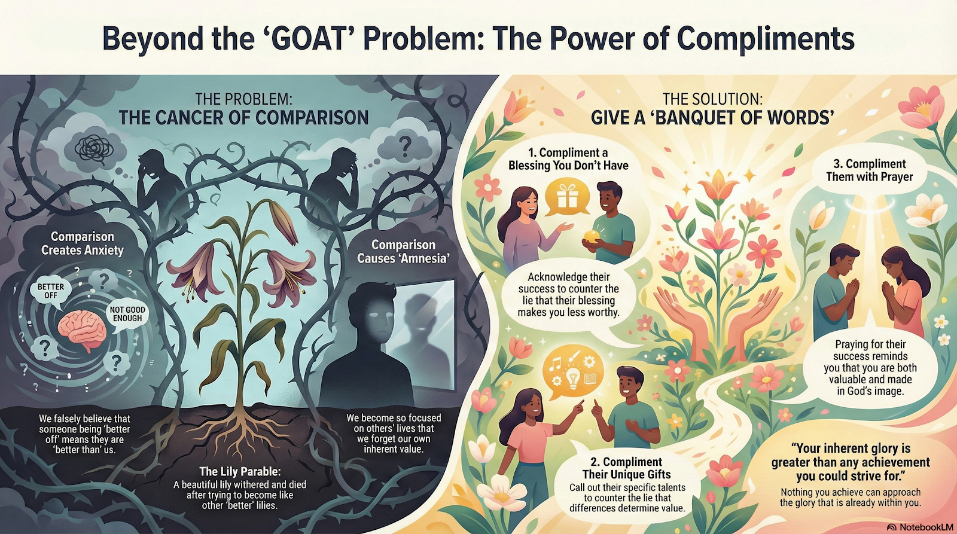 As we continue exploring The GOAT Problem, this week’s focus turns to the anxiety that comparison creates. When our sense of worth becomes tied to how we measure up against others, anxiety takes root. Scripture reveals that comparison doesn’t just distort how we see others—it reshapes how we see ourselves, God, and our own value. How can we avoid the anxiety of comparison?